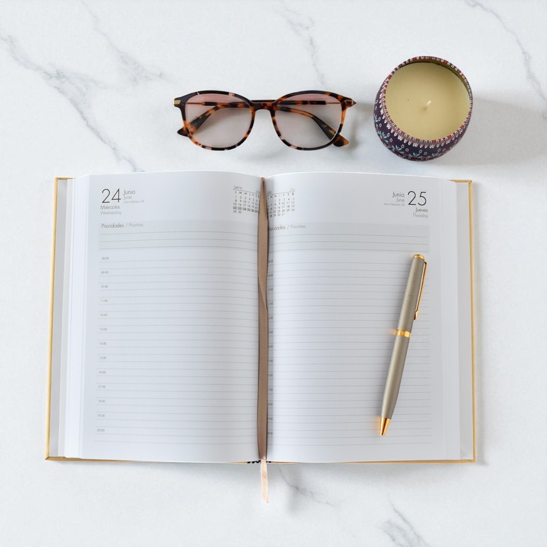 La agenda diaria es ideal para llevar un control detallado de cada día, manteniendo tus metas y tareas siempre a la vista.