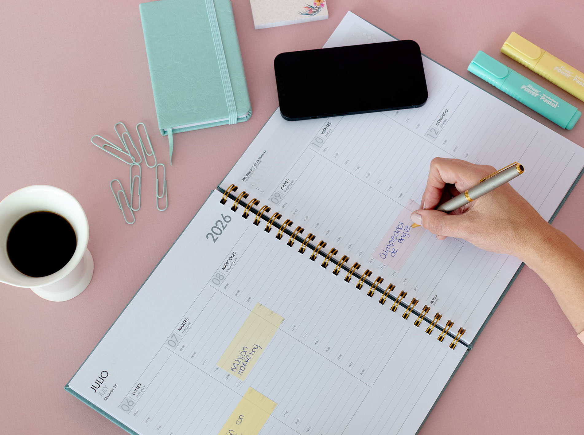 El planner anillado combina flexibilidad y orden, ideal para una planificación práctica y dinámica durante todo el año.